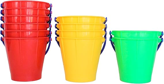 12 pack includes twelve large pails (6 red, 4 yellow, 2 green buckets). Ideal for daycares, schools, museums and camps!